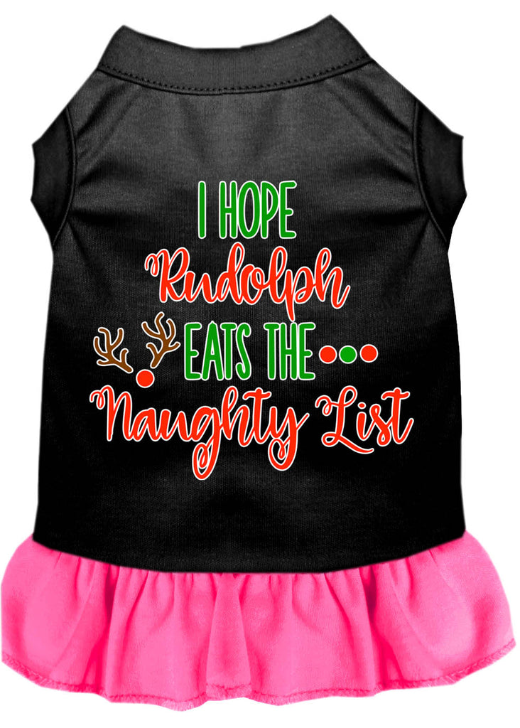 Hope Rudolph Eats Naughty List Screen Print Dog Dress Black With Bright Pink Sm