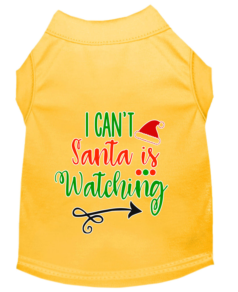 I Can't, Santa Is Watching Screen Print Dog Shirt Yellow Xxl