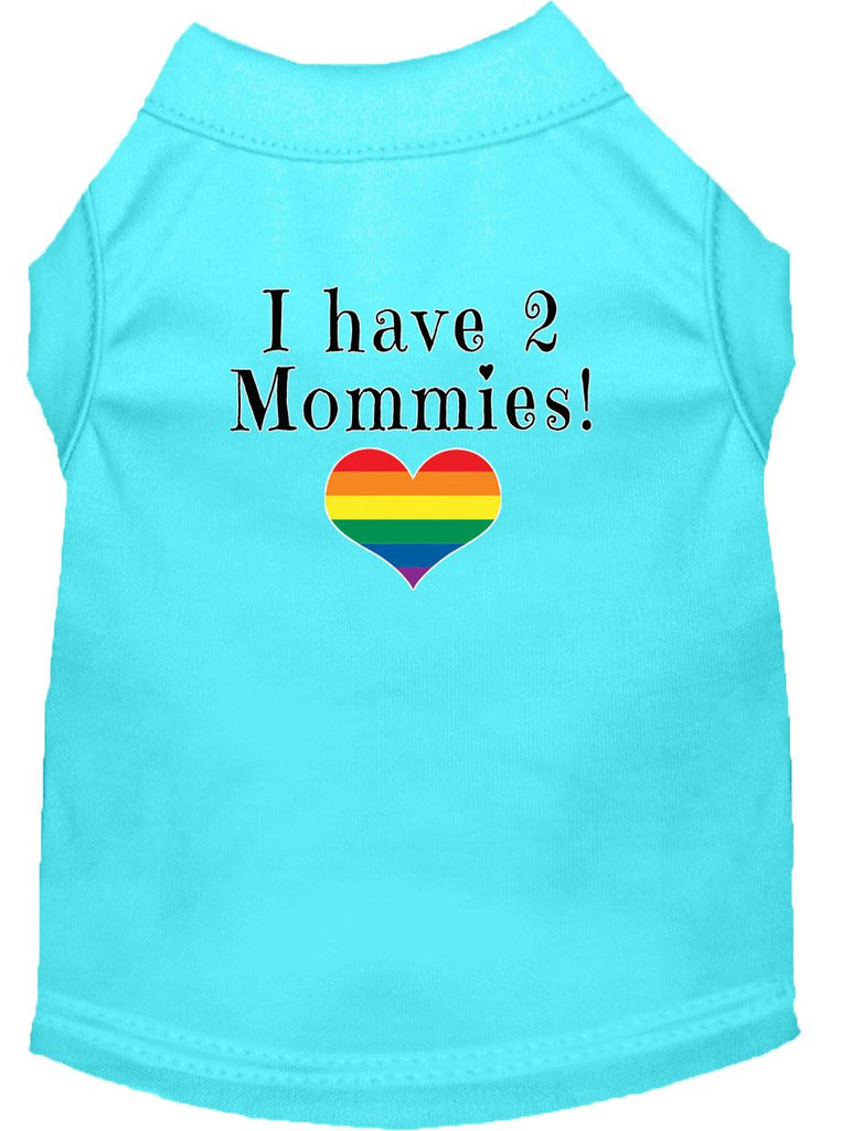 I Have 2 Mommies Screen Print Dog Shirt Aqua Xxxl