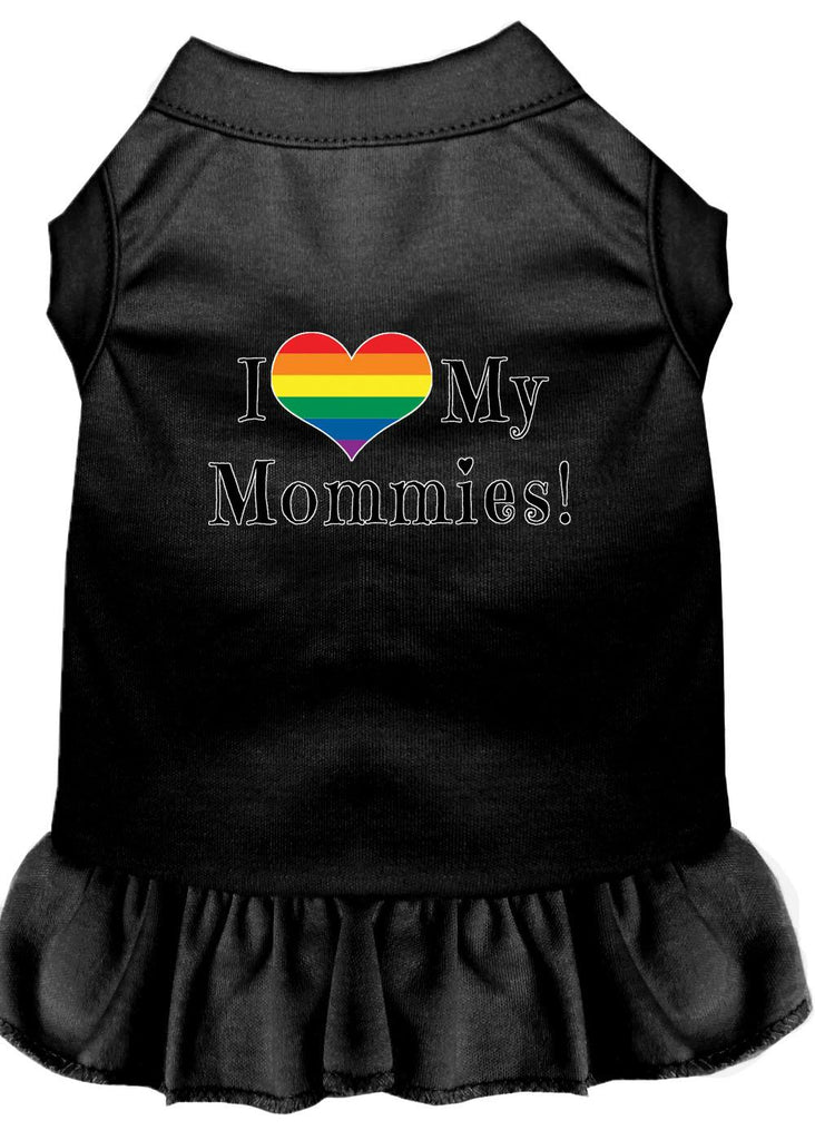 I Heart My Mommies Screen Print Dog Dress Black Lg