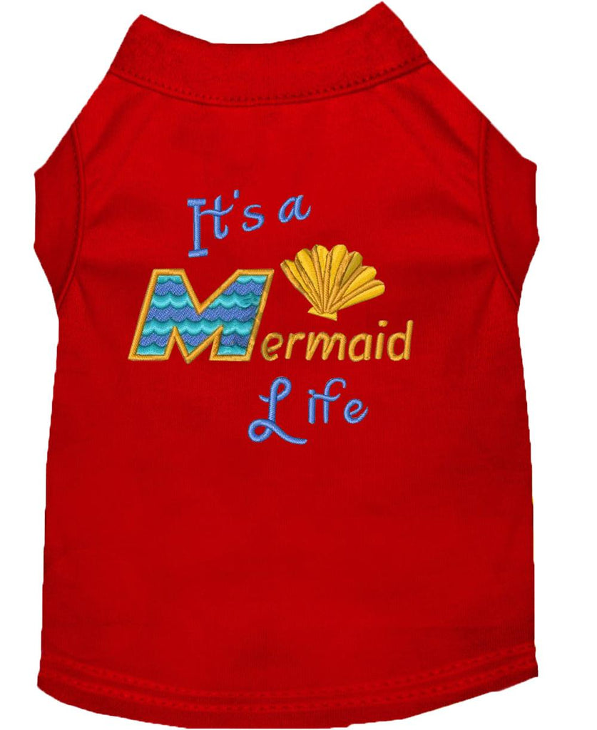 Mermaid Life Embroidered Dog Shirt Red Sm (10)