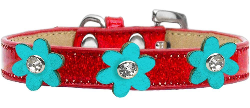 Metallic Flower Ice Cream Collar Red With Metallic Turquoise Flowers Size 10