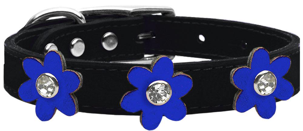 Metallic Flower Leather Collar Black With Metallic Blue Flowers Size 14