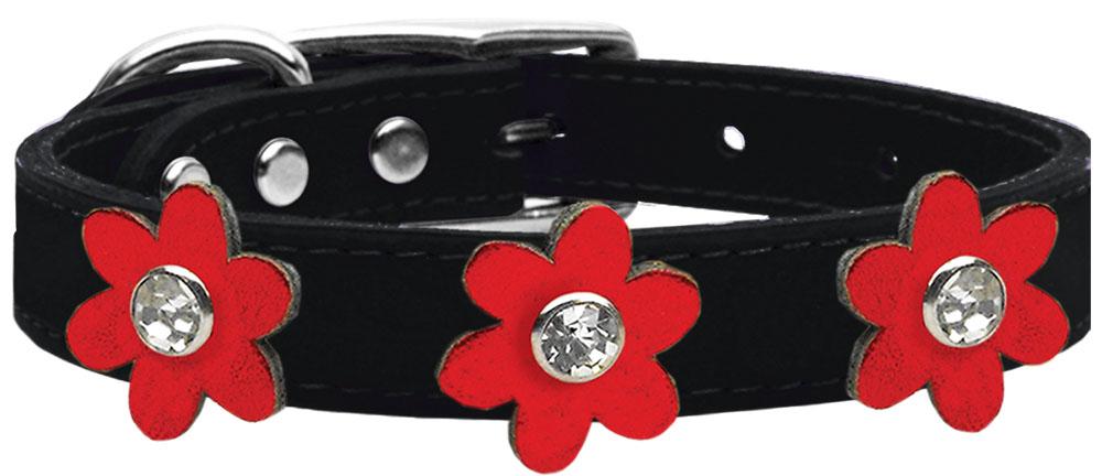 Metallic Flower Leather Collar Black With Metallic Red Flowers Size 26