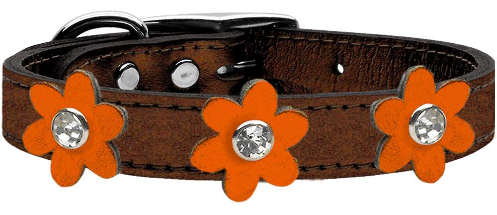 Metallic Flower Leather Collar Bronze With Metallic Orange Flowers Size 18