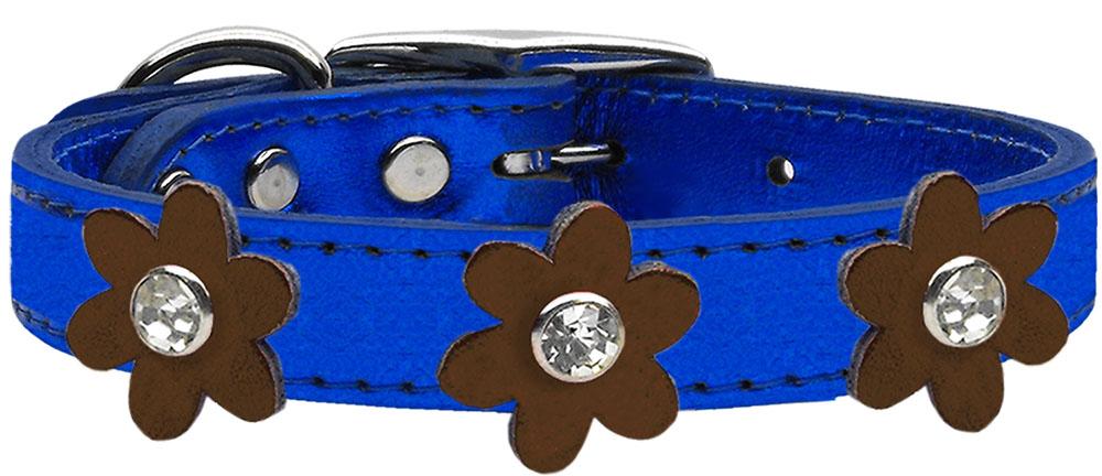 Metallic Flower Leather Collar Metallic Blue With Bronze Flowers Size 20