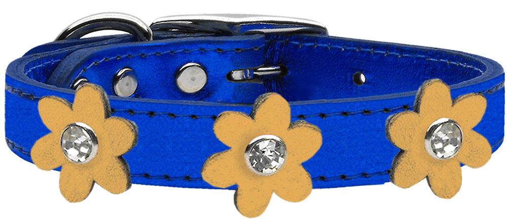 Metallic Flower Leather Collar Metallic Blue With Gold Flowers Size 22