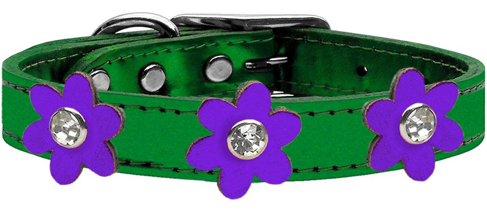 Metallic Flower Leather Collar Metallic Emerald Green With Metallic Purple Flowers Size 26