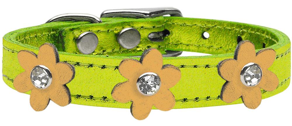 Metallic Flower Leather Collar Metallic Lime Green With Gold Flowers Size 20