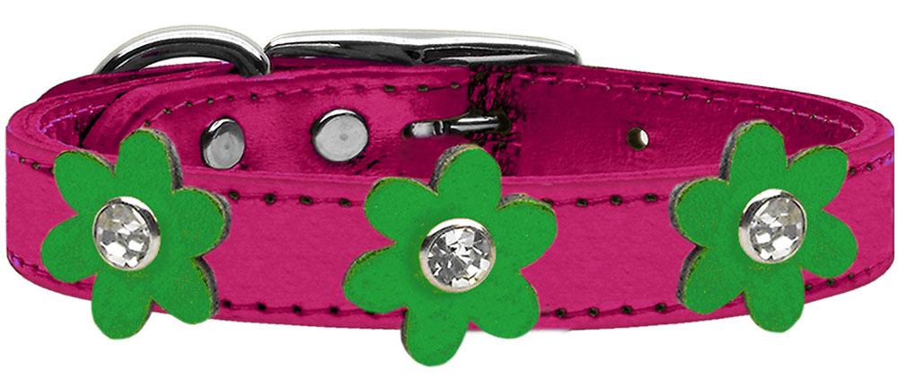 Metallic Flower Leather Collar Metallic Pink With Metallic Emerald Green Flowers Size 20