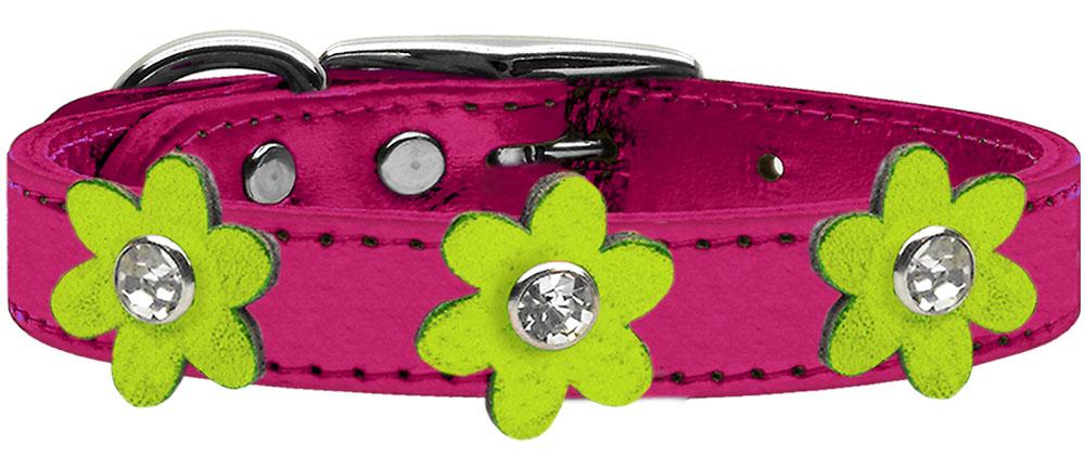 Metallic Flower Leather Collar Metallic Pink With Metallic Lime Green Flowers Size 16