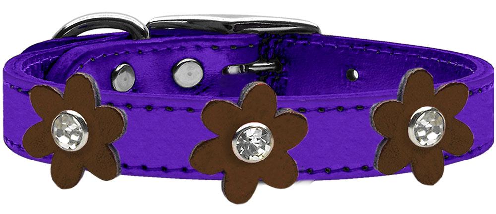 Metallic Flower Leather Collar Metallic Purple With Bronze Flowers Size 24