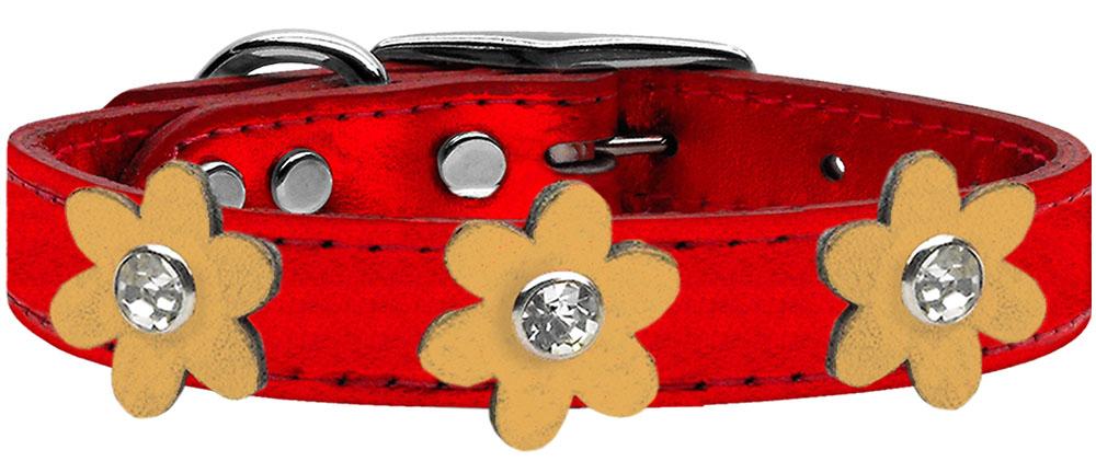 Metallic Flower Leather Collar Metallic Red With Gold Flowers Size 20