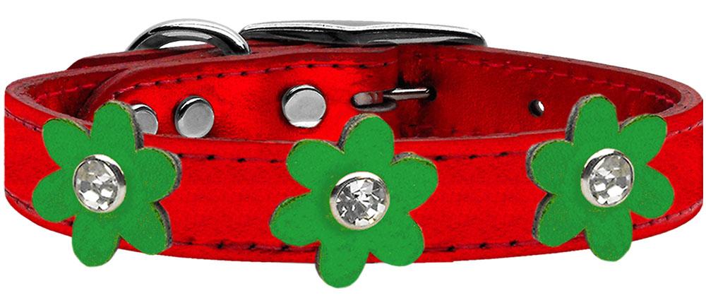 Metallic Flower Leather Collar Metallic Red With Metallic Emerald Green Flowers Size 12