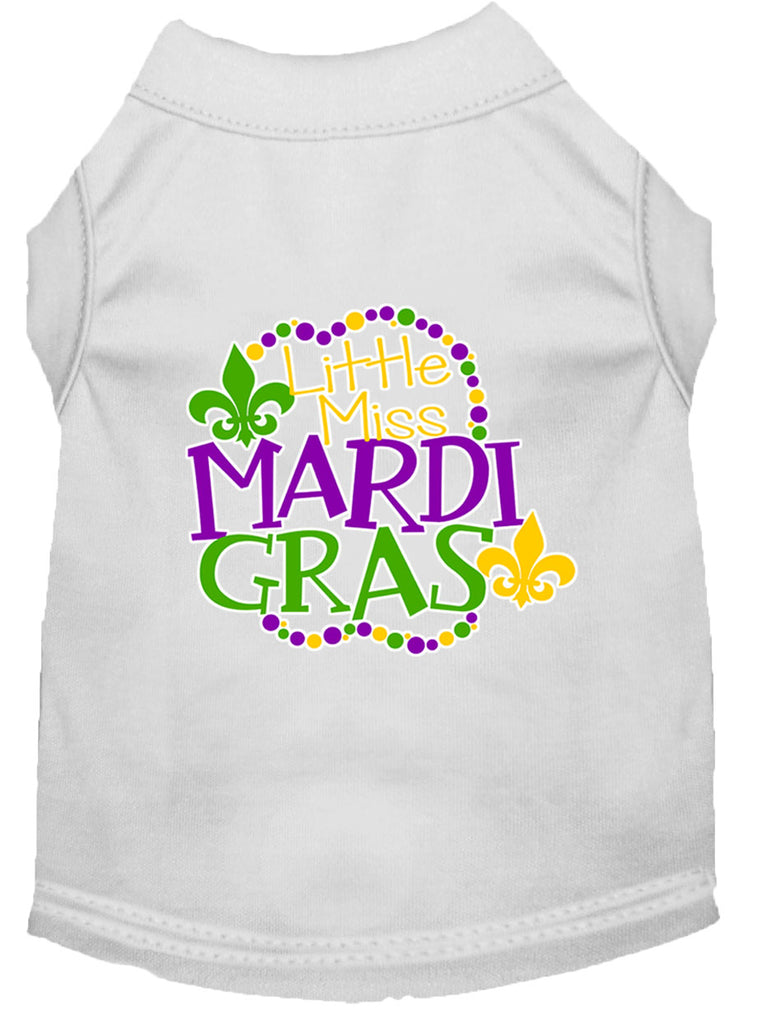 Miss Mardi Gras Screen Print Mardi Gras Dog Shirt White Med