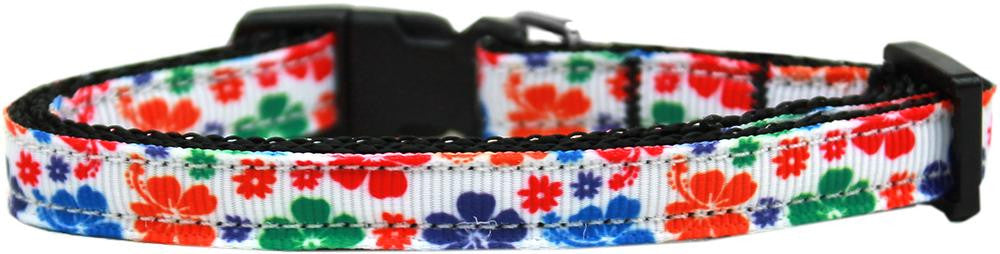 Multi-Colored Hawaiian Hibiscus Nylon Ribbon Dog Collar XS