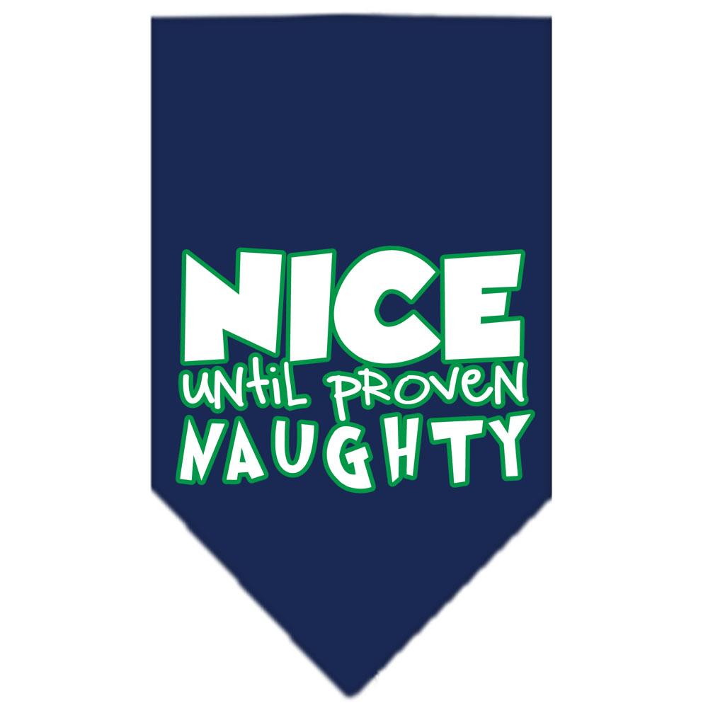 Nice Until Proven Naughty Screen Print Pet Bandana Navy Size Small