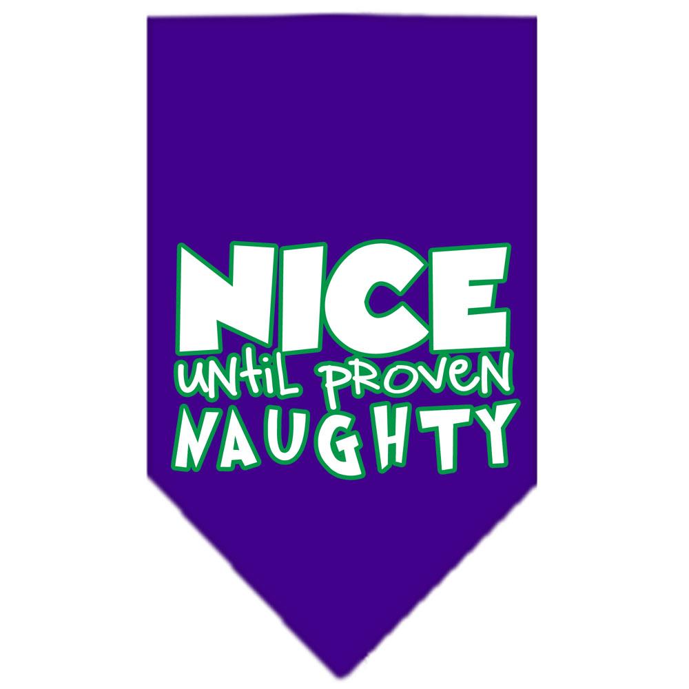 Nice Until Proven Naughty Screen Print Pet Bandana Purple Size Large