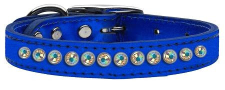 1/2" wide metallic genuine leather adorned with premium rim set Aurora Borealis crystals.