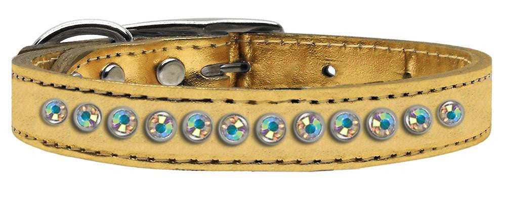 1/2" wide metallic genuine leather adorned with premium rim set Aurora Borealis crystals.