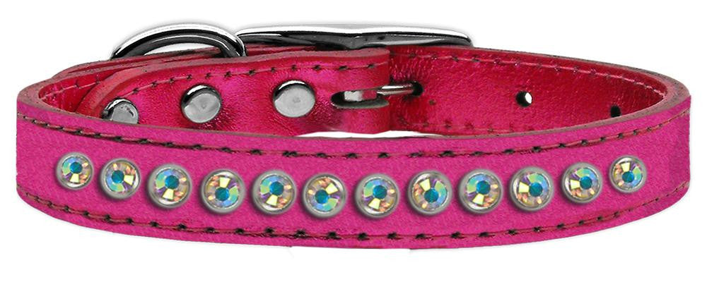 1/2" wide metallic genuine leather adorned with premium rim set Aurora Borealis crystals.