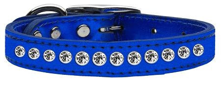 One Row Clear Crystal Metallic Leather Blue 12