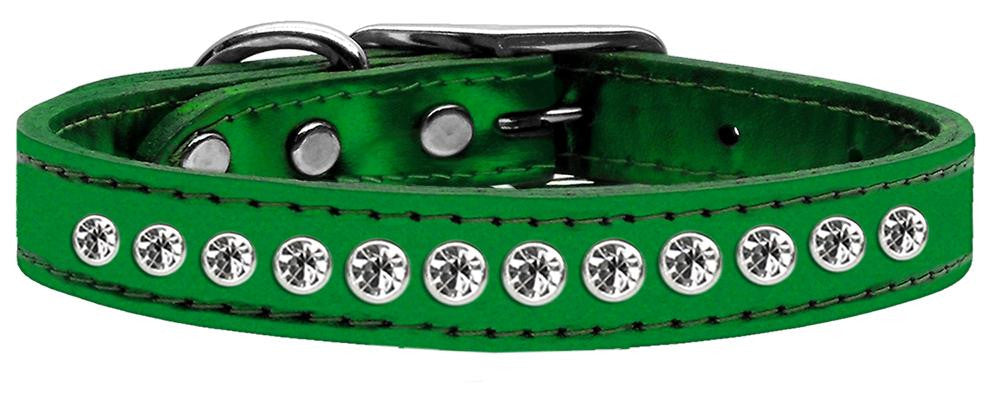 One Row Clear Crystal Metallic Leather Emerald Green 14