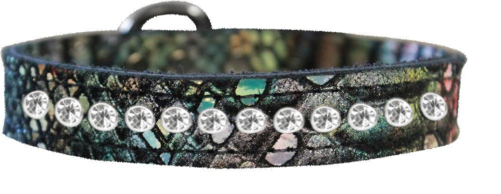 One Row Clear Jeweled Dragon Skin Genuine Leather Dog Collar Magic Size 12