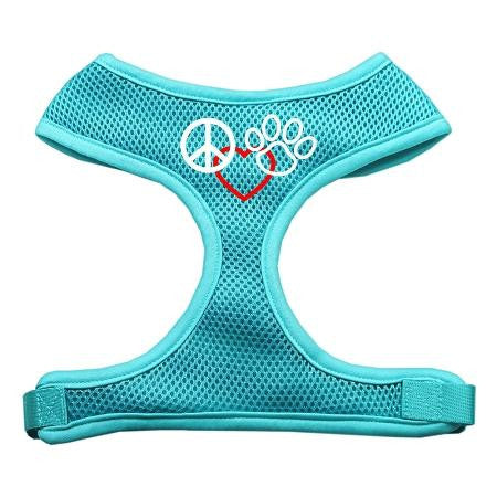 Peace, Love, Paw Design Soft Mesh Harnesses Aqua Large
