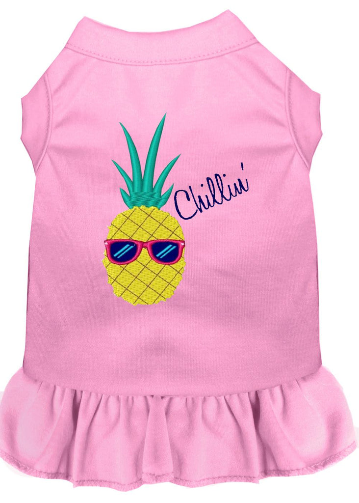 Pineapple Chillin Embroidered Dog Dress Light Pink Xl (16)