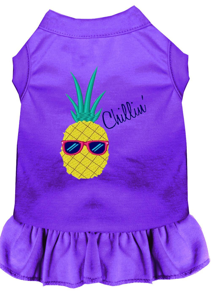 Pineapple Chillin Embroidered Dog Dress Purple 4x (22)