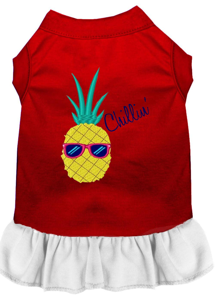 Pineapple Chillin Embroidered Dog Dress Red With White Xxxl (20)