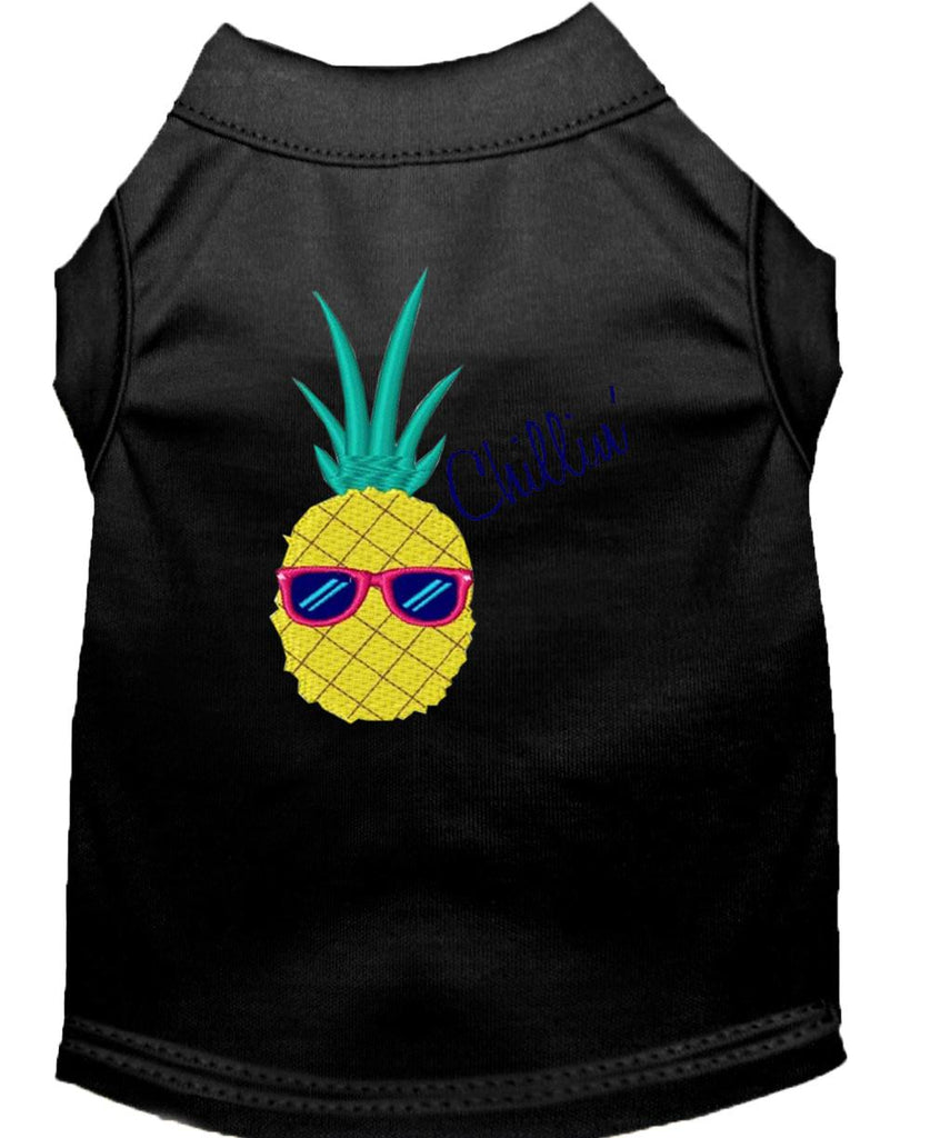 Pineapple Chillin Embroidered Dog Shirt Black Sm (10)