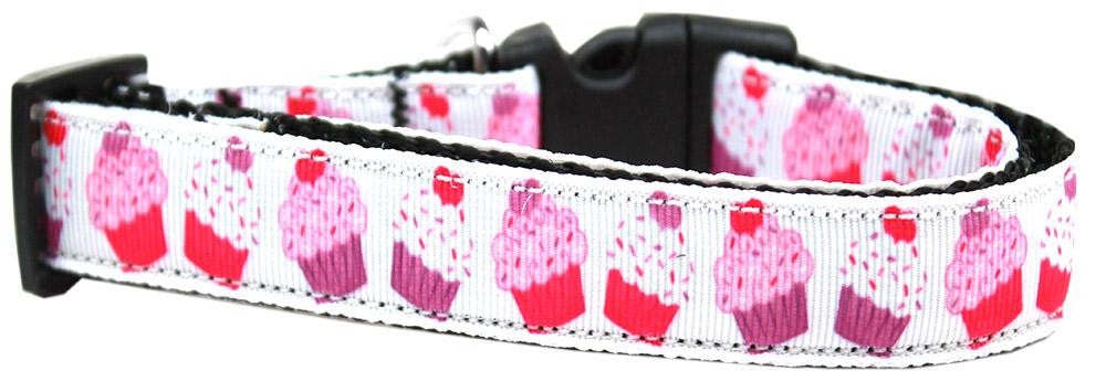 Pink and Purple Cupcakes Nylon Ribbon Dog Collar XL