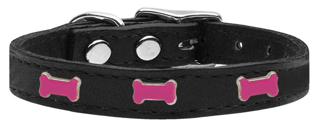 Pink Bone Widget Genuine Leather Dog Collar Black 20