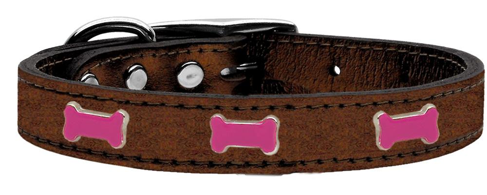 Pink Bone Widget Genuine Metallic Leather Dog Collar Bronze 26