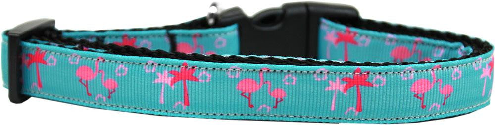Pink Flamingos Nylon Ribbon Dog Collar Medium Narrow
