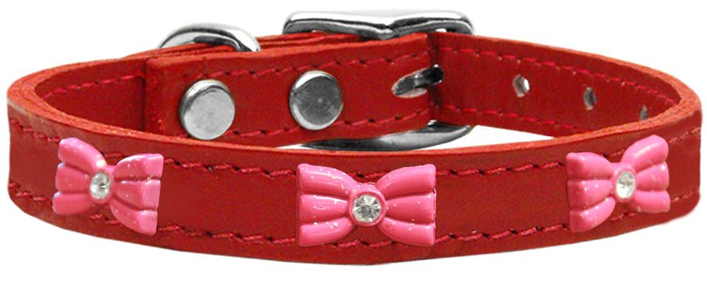 Pink Glitter Bow Widget Genuine Leather Dog Collar Red 10