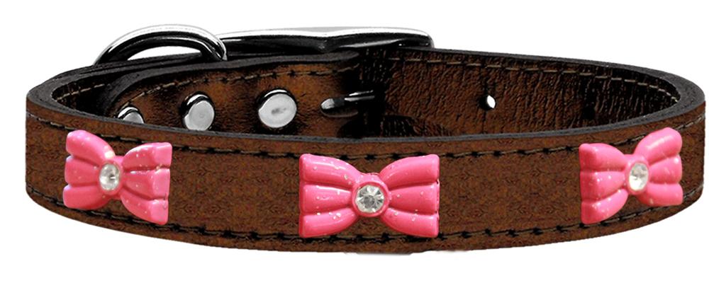 Pink Glitter Bow Widget Genuine Metallic Leather Dog Collar Bronze 18