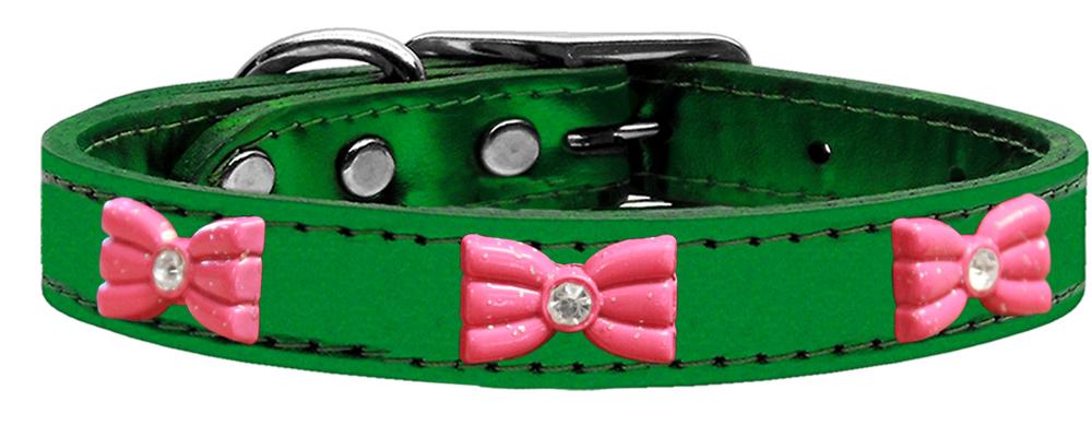 Pink Glitter Bow Widget Genuine Metallic Leather Dog Collar Emerald Green 24