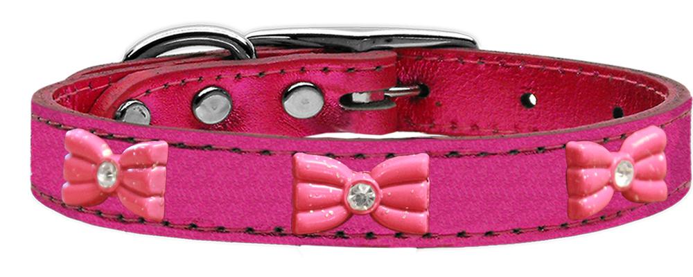 Pink Glitter Bow Widget Genuine Metallic Leather Dog Collar Pink 16