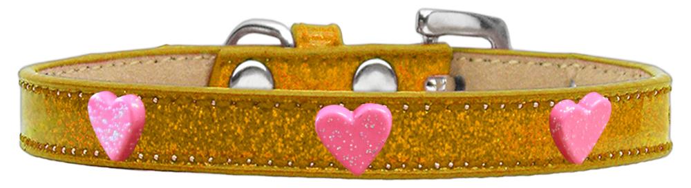 Pink Glitter Heart Widget Dog Collar Gold Ice Cream Size 18