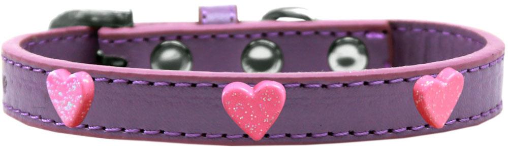 Pink Glitter Heart Widget Dog Collar Lavender Size 12