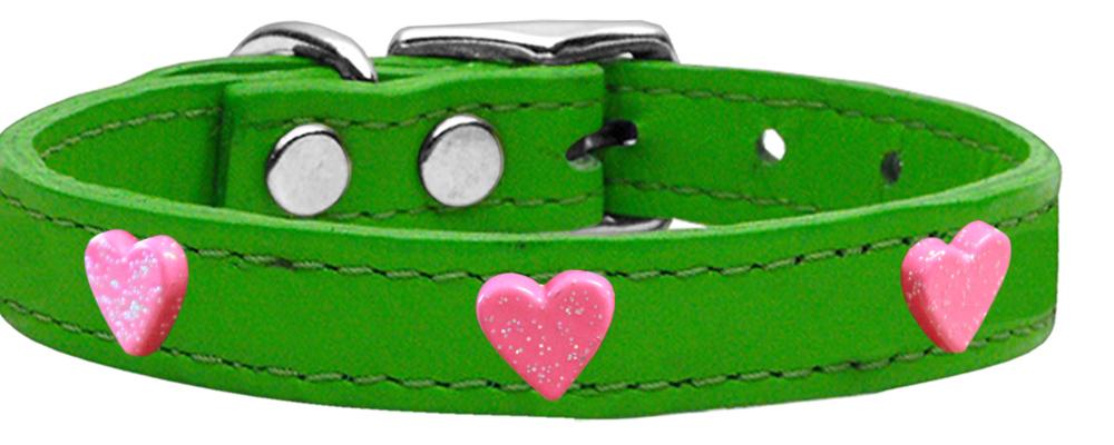 Pink Glitter Heart Widget Genuine Leather Dog Collar Emerald Green 16