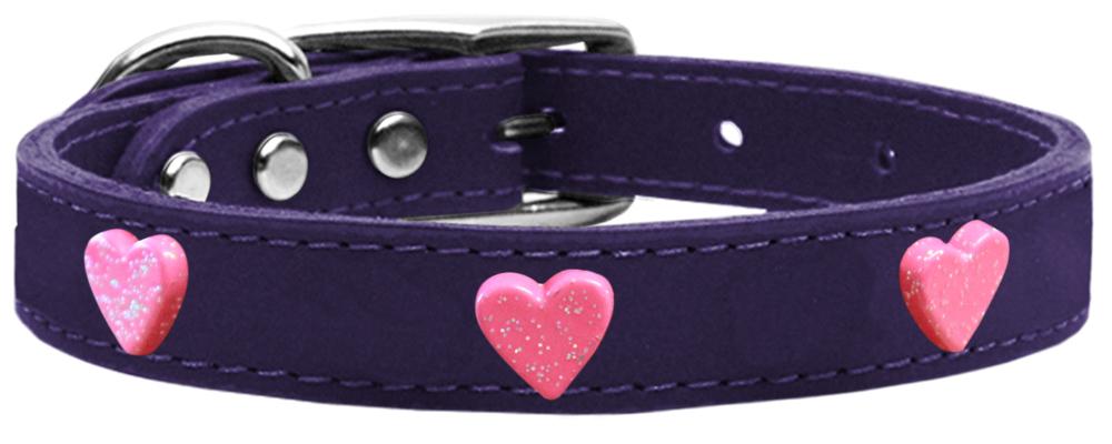 Pink Glitter Heart Widget Genuine Leather Dog Collar Purple 10