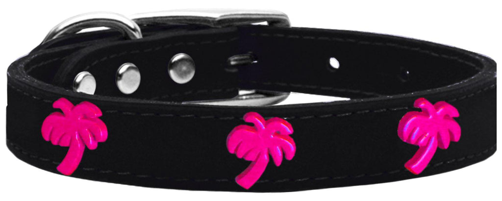 Pink Palm Tree Widget Genuine Leather Dog Collar Black 20
