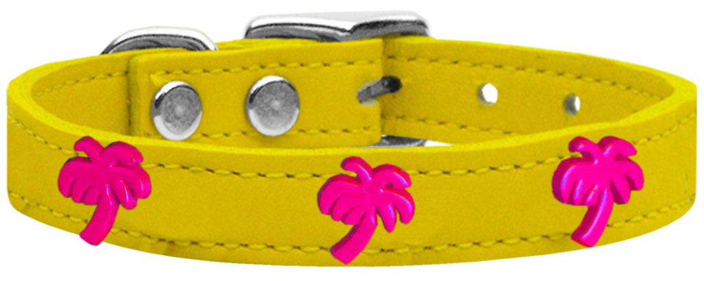 Pink Palm Tree Widget Genuine Leather Dog Collar Yellow 12