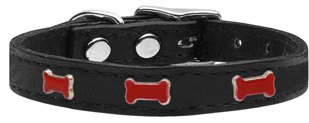 Red Bone Widget Genuine Leather Dog Collar Black 14