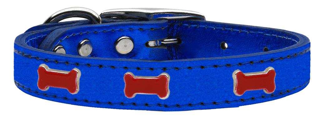 Red Bone Widget Genuine Metallic Leather Dog Collar Blue 10