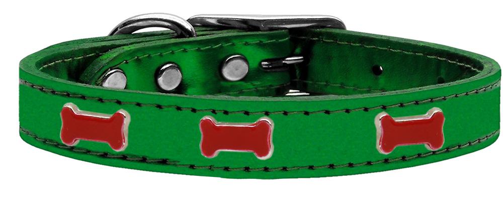 Red Bone Widget Genuine Metallic Leather Dog Collar Emerald Green 22